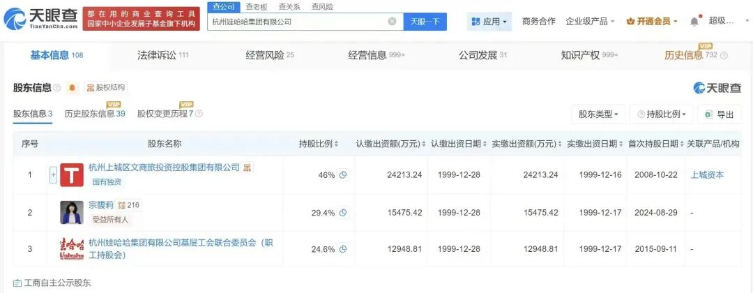 天眼查APP显示,目前,杭州娃哈哈集团有限公司还未发生变更,法定代表人依然是宗馥莉,同时她也是宏胜饮料集团有限公司的董事。